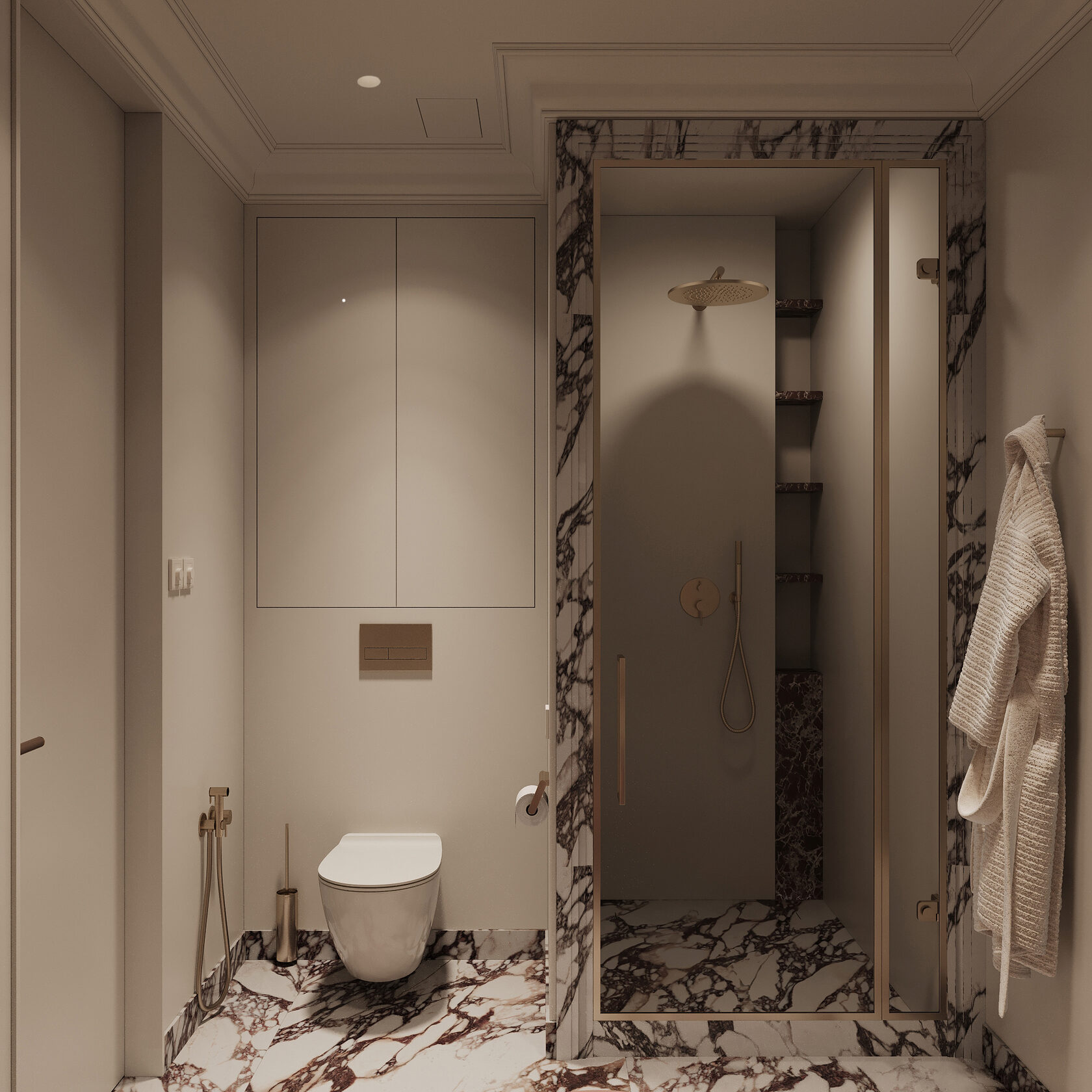 В основе пространства — воздух и чистота линий. Светлые стены с аккуратным профилем, выверенная геометрия, спокойная палитра, мягкие переливы тепла и холода — всё работает на ощущение спокойной, зрелой эстетики.